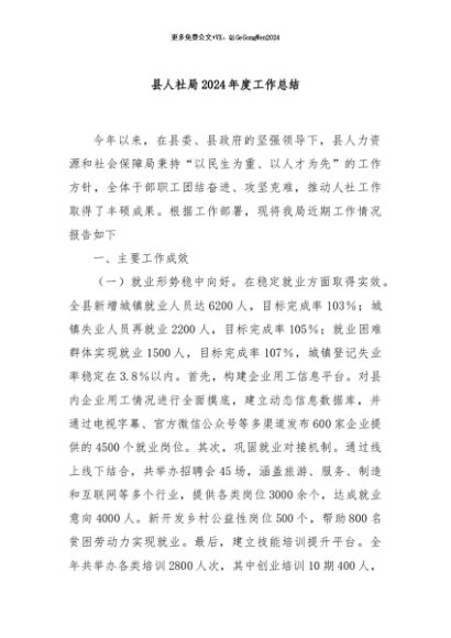 / 【七哥公文】2024年:县人社局2024年度工作总结+更多免费公文+VX:QiGeGongWen2024