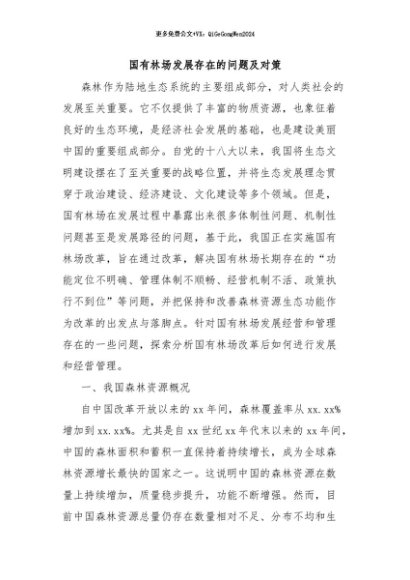 / 【七哥公文】2024年:国有林场发展存在的问题及对策+更多免费公文+VX:QiGeGongWen2024