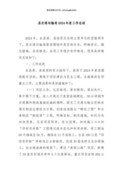 / 【七哥公文】2024年:县交通运输局2024年度工作总结+更多免费公文+VX:QiGeGongWen2024
