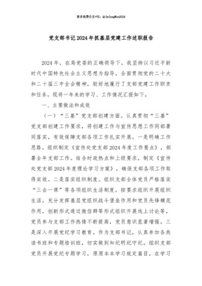 / 【七哥公文】2024年:党支部书记2024年抓基层党建工作述职报告+更多免费公文+VX:QiGeGongWen2024