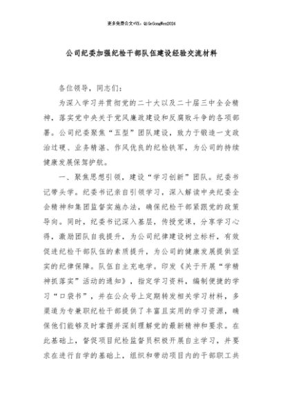 / 【七哥公文】2024年:公司纪委加强纪检干部队伍建设经验交流材料+更多免费公文+VX:QiGeGongWen2024