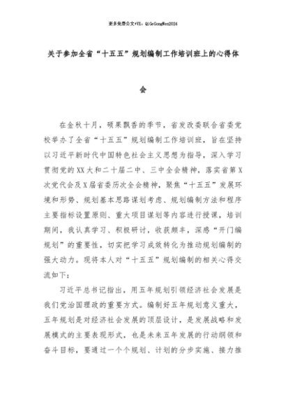 【七哥公文】2024年:关于参加全省“十五五”规划编制工作培训班上的心得体会+更多免费公文+VX:QiGeGongWen2024