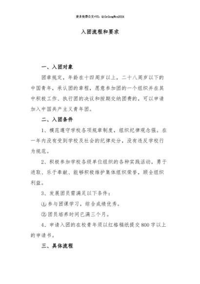 【七哥公文】2024年:入团流程和要求+更多免费公文+VX:QiGeGongWen2024