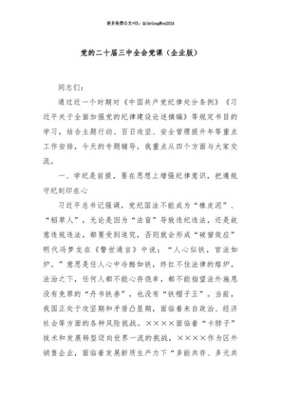 / 【七哥公文】2024年:党的二十届三中全会党课(企业版)+更多免费公文+VX:QiGeGongWen2024
