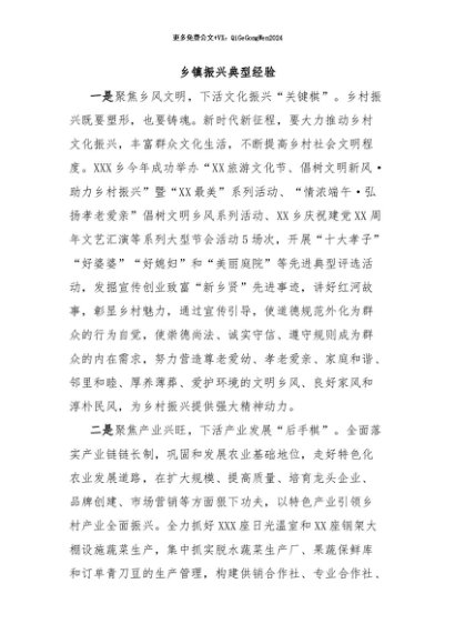 / 【七哥公文】2024年:乡镇振兴典型经验+更多免费公文+VX:QiGeGongWen2024