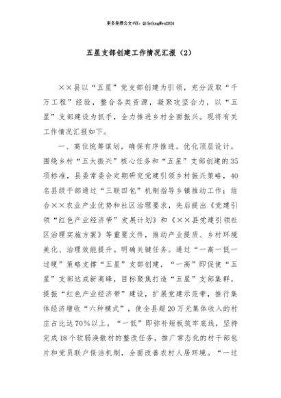 / 【七哥公文】2024年:五星支部创建工作情况汇报(2)+更多免费公文+VX:QiGeGongWen2024