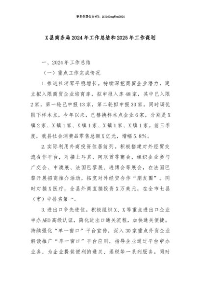 / 【七哥公文】2024年:X县商务局2024年工作总结和2025年工作谋划+更多免费公文+VX:QiGeGongWen2024