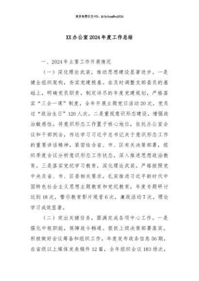 / 【七哥公文】2024年:XX办公室2024年度工作总结+更多免费公文+VX:QiGeGongWen2024