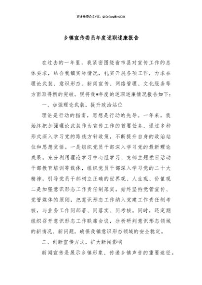 / 【七哥公文】2024年:乡镇宣传委员年度述职述廉报告+更多免费公文+VX:QiGeGongWen2024