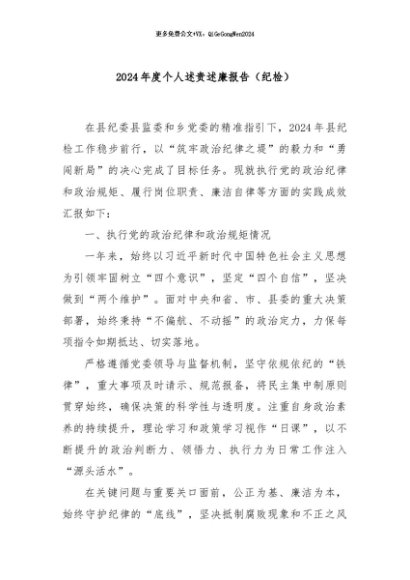 / 【七哥公文】2024年:2024年度个人述责述廉报告(纪检)+更多免费公文+VX:QiGeGongWen2024