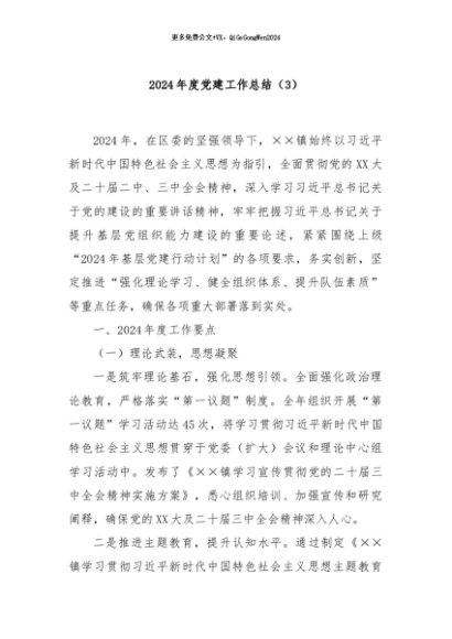 / 【七哥公文】2024年:2024年度党建工作总结(3)+更多免费公文+VX:QiGeGongWen2024
