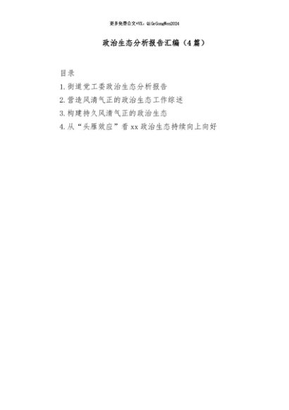 / 【七哥公文】2024年:(4篇)政治生态分析报告汇编+更多免费公文+VX:QiGeGongWen2024