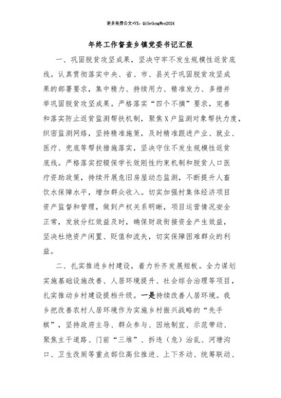 / 【七哥公文】2024年:年终工作督查乡镇党委书记汇报+更多免费公文+VX:QiGeGongWen2024