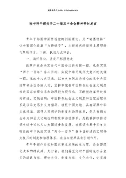 / 【七哥公文】2024年:秘书科干部关于二十届三中全会精神研讨发言+更多免费公文+VX:QiGeGongWen2024