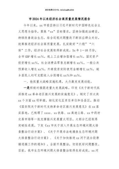 / 【七哥公文】2024年:市2024年以来经济社会高质量发展情况报告+更多免费公文+VX:QiGeGongWen2024