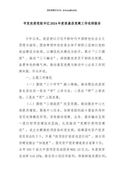 【七哥公文】2024年:市发改委党组书记2024年度抓基层党建工作述职报告+更多免费公文+VX:QiGeGongWen2024