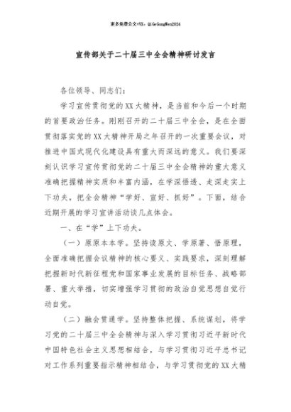 / 【七哥公文】2024年:宣传部关于二十届三中全会精神研讨发言+更多免费公文+VX:QiGeGongWen2024