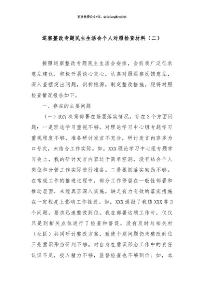 / 【七哥公文】2024年:巡察整改专题民主生活会个人对照检查材料(二)+更多免费公文+VX:QiGeGongWen2024