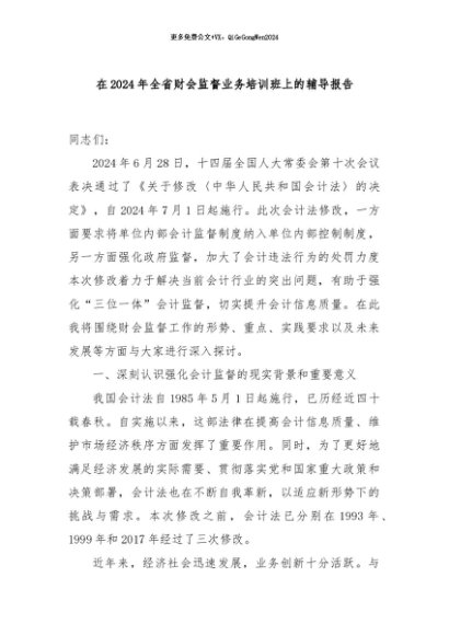 / 【七哥公文】2024年:在2024年全省财会监督业务培训班上的辅导报告+更多免费公文+VX:QiGeGongWen2024