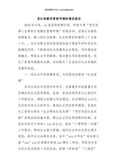 / 【七哥公文】2024年:县打造最优营商环境的情况报告+更多免费公文+VX:QiGeGongWen2024