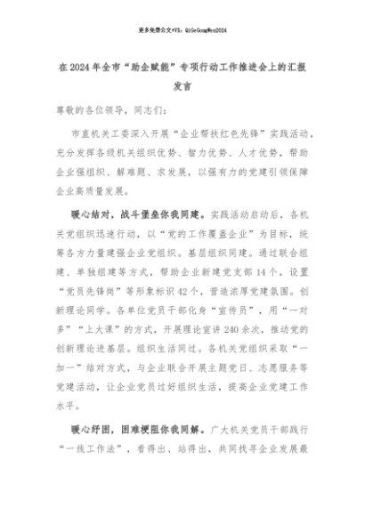 【七哥公文】2024年:在2024年全市“助企赋能”专项行动工作推进会上的汇报发言+更多免费公文+VX:QiGeGongWen2024