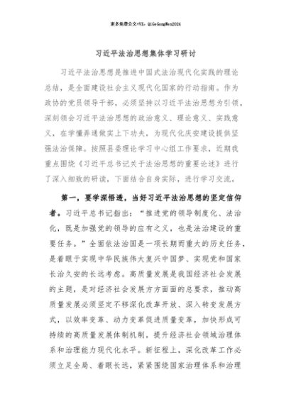 【七哥公文】2024年:习近平法治思想集体学习研讨+更多免费公文+VX:QiGeGongWen2024
