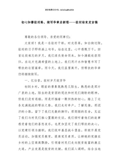 / 【七哥公文】2024年:初心如磐驻村路,续写华章启新程——驻村结束发言稿+更多免费公文+VX:QiGeGongWen2024