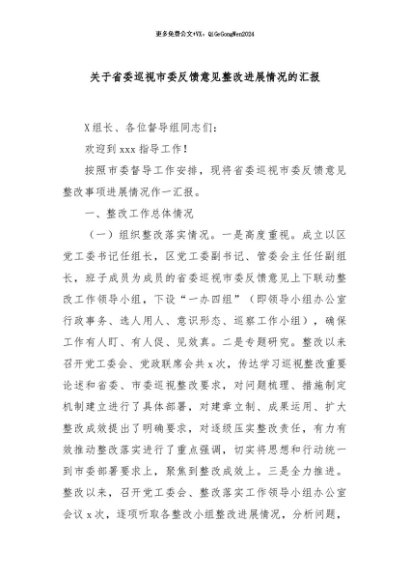 / 【七哥公文】2024年:关于省委巡视市委反馈意见整改进展情况的汇报+更多免费公文+VX:QiGeGongWen2024