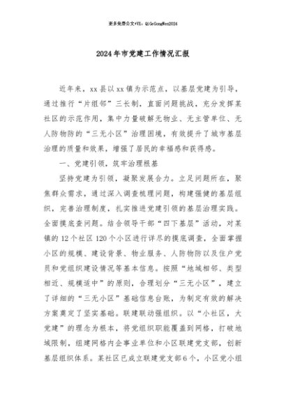 / 【七哥公文】2024年:2024年市党建工作情况汇报+更多免费公文+VX:QiGeGongWen2024