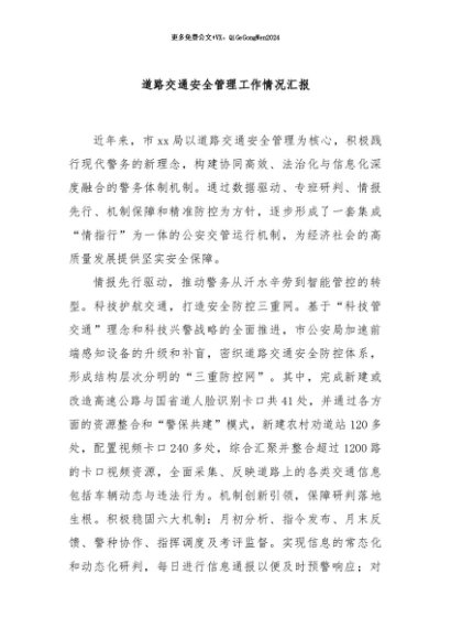 / 【七哥公文】2024年:道路交通安全管理工作情况汇报+更多免费公文+VX:QiGeGongWen2024