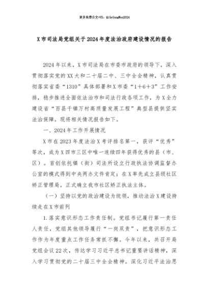 【七哥公文】2024年:X市司法局党组关于2024年度法治政府建设情况的报告+更多免费公文+VX:QiGeGongWen2024