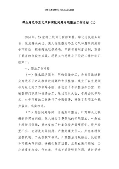 / 【七哥公文】2024年:群众身边不正之风和腐败问题专项整治工作总结(1)+更多免费公文+VX:QiGeGongWen2024