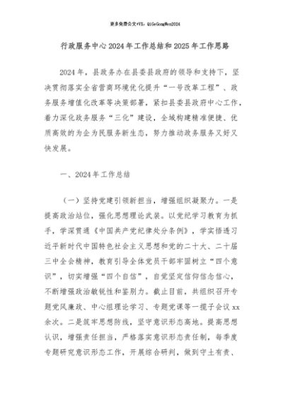 【七哥公文】2024年:行政服务中心2024年工作总结和2025年工作思路+更多免费公文+VX:QiGeGongWen2024