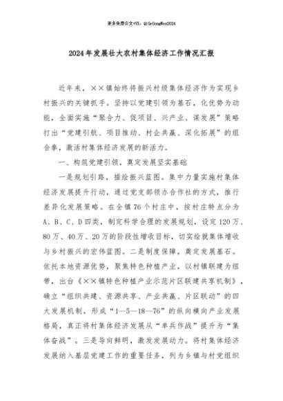 / 【七哥公文】2024年:2024年发展壮大农村集体经济工作情况汇报+更多免费公文+VX:QiGeGongWen2024