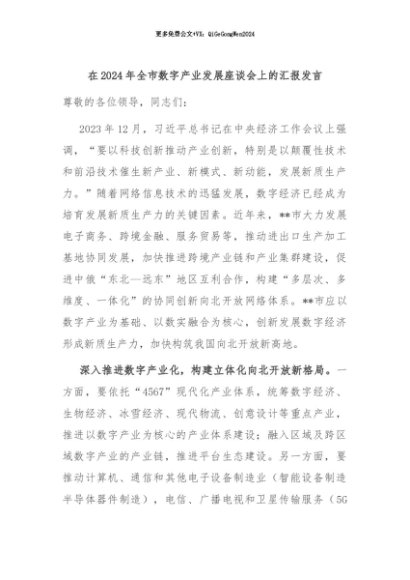 / 【七哥公文】2024年:在2024年全市数字产业发展座谈会上的汇报发言+更多免费公文+VX:QiGeGongWen2024