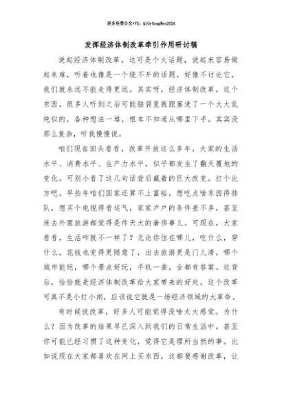 / 【七哥公文】2024年:发挥经济体制改革牵引作用研讨稿+更多免费公文+VX:QiGeGongWen2024