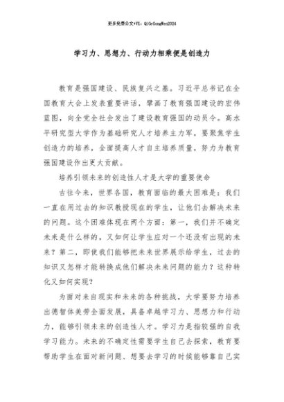 / 【七哥公文】2024年:学习力、思想力、行动力相乘便是创造力+更多免费公文+VX:QiGeGongWen2024
