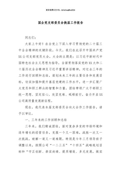 / 【七哥公文】2024年:国企党支部委员会换届工作报告+更多免费公文+VX:QiGeGongWen2024