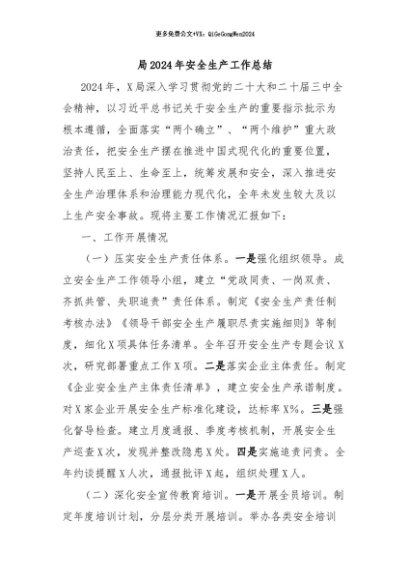 / 【七哥公文】2024年:局2024年安全生产工作总结+更多免费公文+VX:QiGeGongWen2024