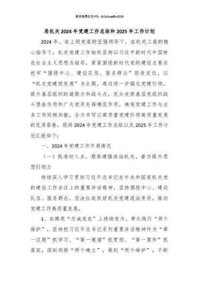 / 【七哥公文】2024年:局机关2024年党建工作总结和2025年工作计划+更多免费公文+VX:QiGeGongWen2024