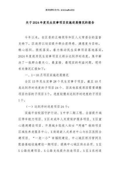 / 【七哥公文】2024年:关于2024年度民生实事项目实施进展情况的报告+更多免费公文+VX:QiGeGongWen2024