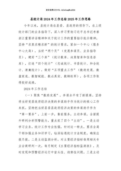 / 【七哥公文】2024年:县统计局2024年工作总结2025年工作思路+更多免费公文+VX:QiGeGongWen2024