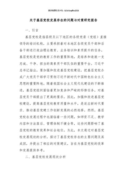 / 【七哥公文】2024年:关于基层党校发展存在的问题与对策研究报告+更多免费公文+VX:QiGeGongWen2024