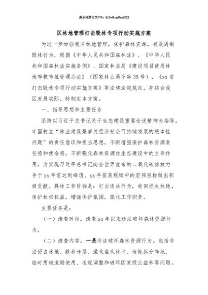 / 【七哥公文】2024年:区林地管理打击毁林专项行动实施方案+更多免费公文+VX:QiGeGongWen2024