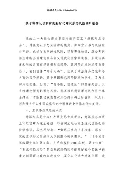 / 【七哥公文】2024年:关于科学认识和防范新时代意识形态风险调研报告+更多免费公文+VX:QiGeGongWen2024