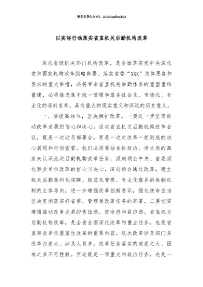【七哥公文】2024年:以实际行动落实省直机关后勤机构改革+更多免费公文+VX:QiGeGongWen2024