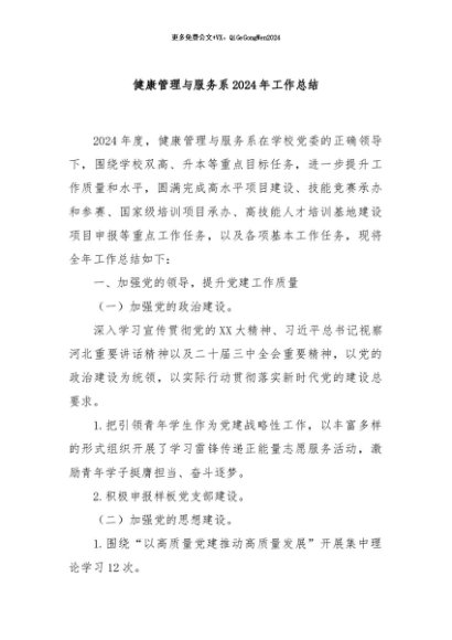 / 【七哥公文】2024年:健康管理与服务系2024年工作总结+更多免费公文+VX:QiGeGongWen2024
