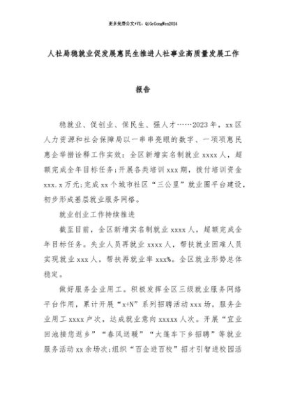 【七哥公文】2024年:人社局稳就业促发展惠民生推进人社事业高质量发展工作报告+更多免费公文+VX:QiGeGongWen2024
