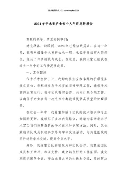 / 【七哥公文】2024年:2024年手术室护士长个人年终总结报告+更多免费公文+VX:QiGeGongWen2024