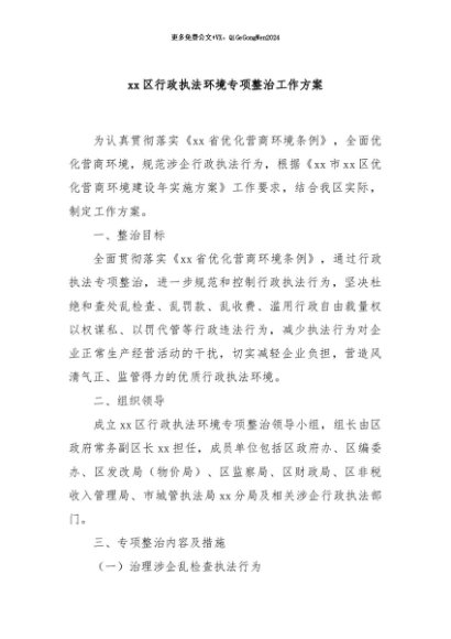 【七哥公文】2024年:xx区行政执法环境专项整治工作方案+更多免费公文+VX:QiGeGongWen2024